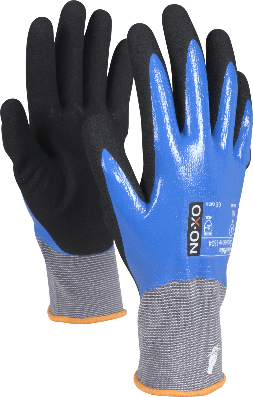 OX-ON Flexible Arbejdshandske Supreme 1604 er en vandtæt allround-handske i topklasse med en naturlig pasform, fin fingerfølelse, smidighed og førsteklasses slidstyrke.