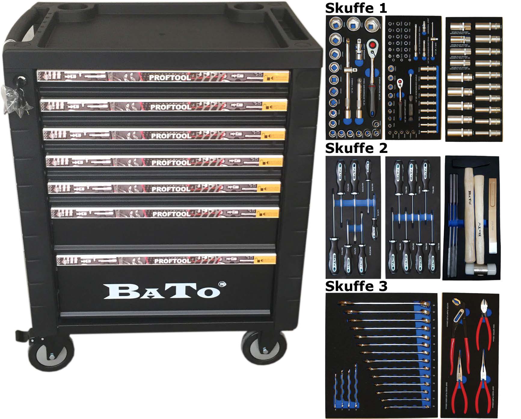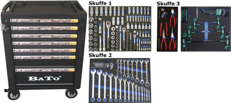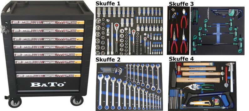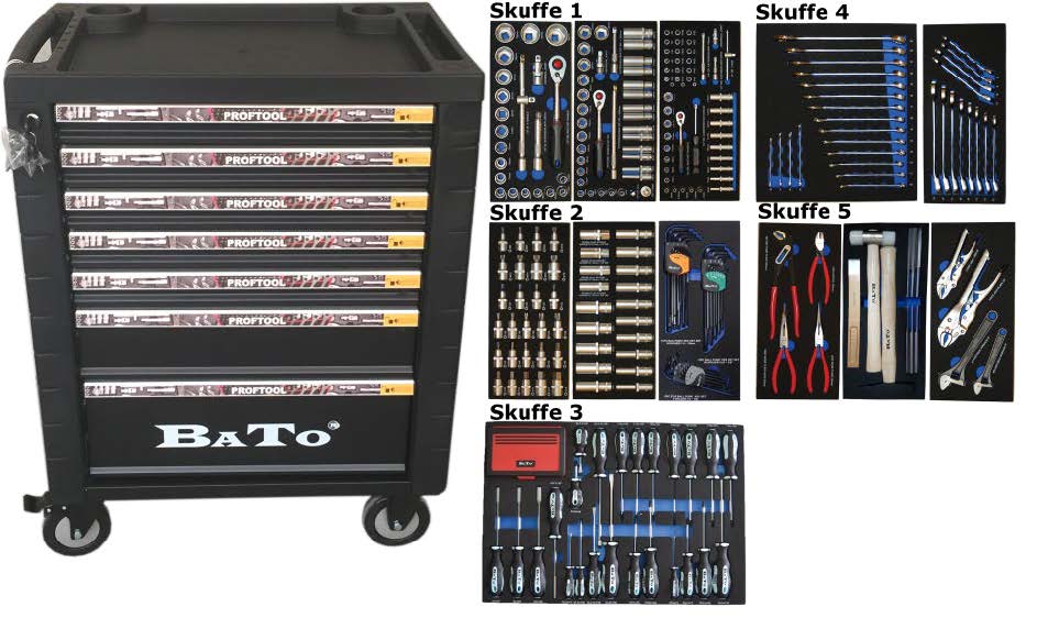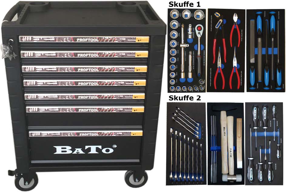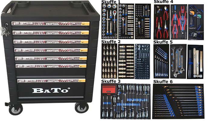 BATO Værktøjsvogn med værktøj / 7 skuffer 225 dele.