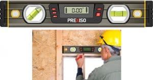 Nøjagtighed eletronisk måling 45G/90G/180G +/-0,1G. Libelle 0,5mm/m. Perfekt for ejendomsmæglere, gulvlæggere, bygningskonstruktører, landbrug, håndværkere mm. Højeste laserteknologi fra Schweiz. Måleområde 0-360G (4x90G). Mål 29×4,5×2,7cm. Stor display med lys. Dispaly er vendbar. Batterier 2xCR2032